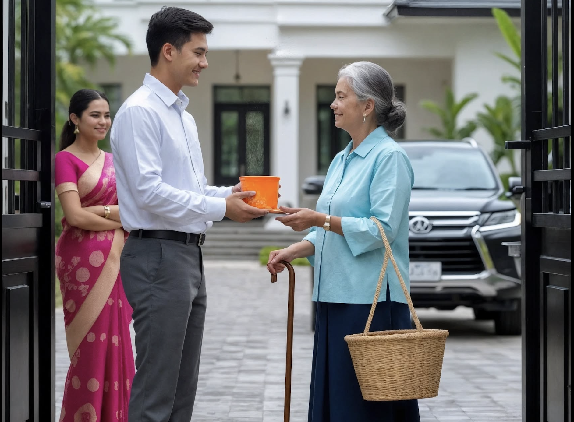 After a moment, the door opened. It was her daughter-in-law — a young woman with a cold expression and a sharp tone.