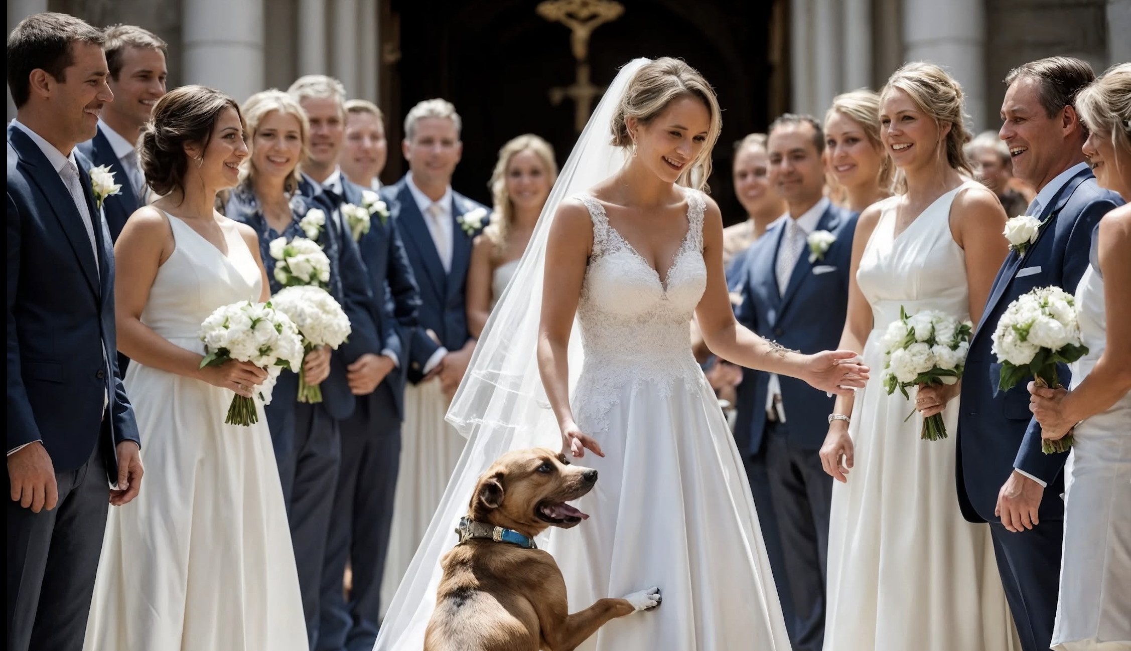 During the wedding, the German Shepherd suddenly stood on the bride’s feet; a second later, something unexpected happened