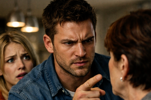 At that moment, the lock clicked in the hallway. Footsteps. Artyom walked into the living room and froze in the doorway. His face instantly hardened when he saw his crying wife by the wall and his mother standing next to her.